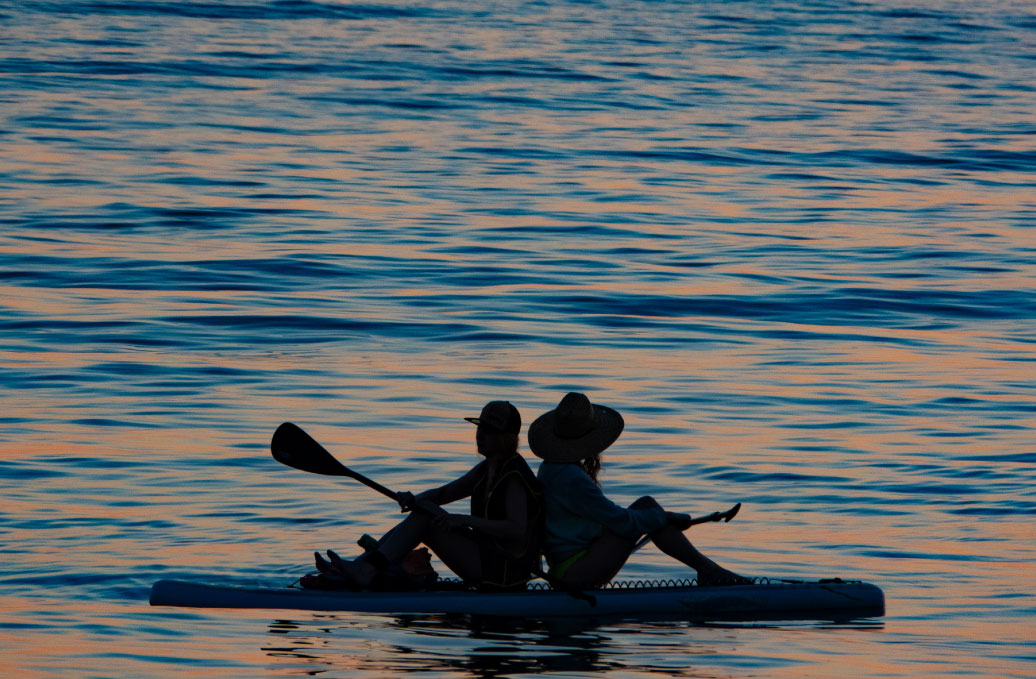 Rentals available right on the shoreline at Black Miners Bar, plus unique experiences like full moon paddles.